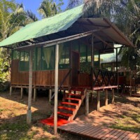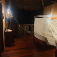 Day 3.- After reakfast adventure circuit is reached by climbing a system of towers and stairs that ascend to the tops of the trees and a platform 30 meters above the surface of the forest. You will feel the air flow in your face as you cross the suspension bridge, which leads to a platform wrapped around the huge trunk of a tree, one of the thickest and strongest trees found in the rainforest.Orchids and other aerial plants that grow between tall branches are usually seen closely as the nests of many birds.We return by the bridge of the canopy and climb to the high platform that marks the beginning of the zipline cable, almost 200 m long, that we fly through the air flow like eagles towards a platform.The views are exceptional only harmonized by the enjoyment of overcoming our fears and the adrenaline that flows through us.The footbridge of 200 m long, which hangs on the ground, leaves this system; an act of balance takes us to the platform at the beginning of the second Zip line, flies back to the tower that goes down to the forest floor.After lunch, we go to the river to practice kayaking, well protected with high quality life vests, and followed by a motorboat that guarantees greater security; This activity is quiet and accessible to everyone.Going down the river, or against the flow of the river, we can easily see the countless birds that inhabit this areaBefore dinner, we will make a night walk through the lodge to appreciate the diversity of insects, amphibians, reptiles and other nocturnal animals. This is the night walk of your Peru Amazon tour for this jungle adventure.
